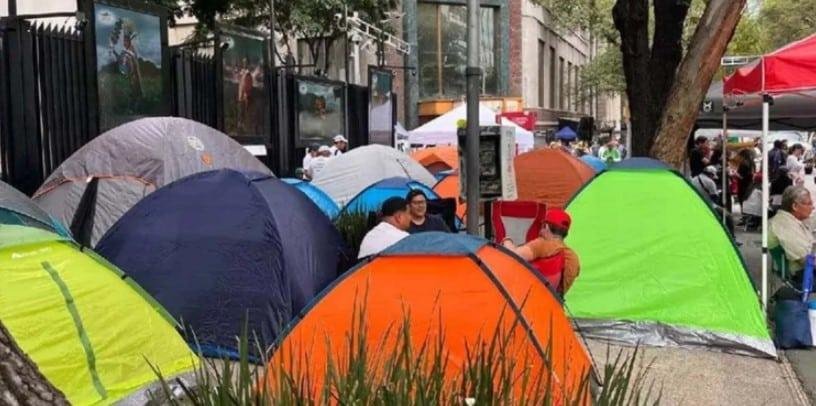 En un acto de resistencia, los trabajadores del Poder Judicial han levantado un campamento a lo largo de Paseo de la Reforma, donde han instalado tiendas de campaña para permanecer de manera indefinida. Durante el día, el ambiente es de constante agitación: los manifestantes entonan consignas, portan pancartas y exhiben mantas con mensajes que exigen el respeto a la autonomía judicial.